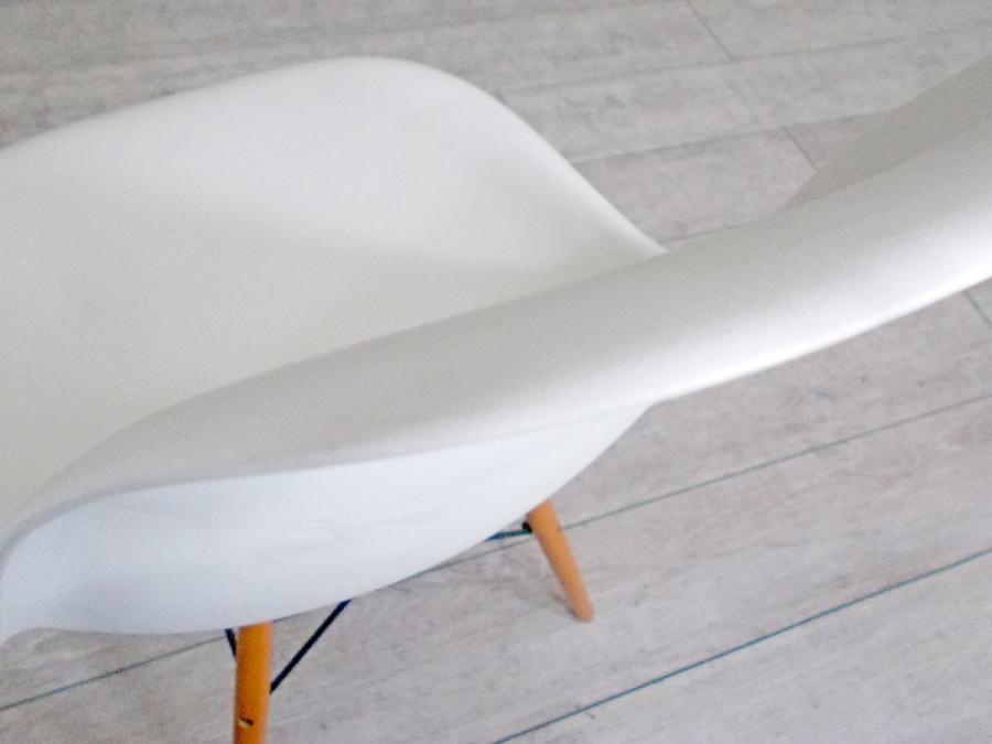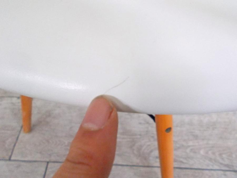 - かなり強い濃い黄ばみ・変色が商品全体にある。(例、座面・背もたれ、脚部等にある。)