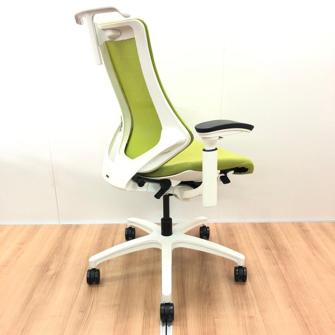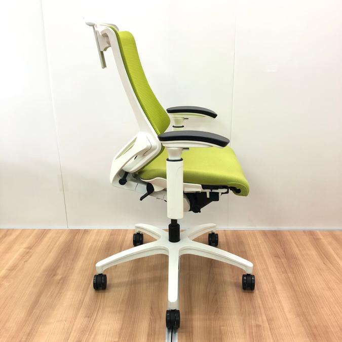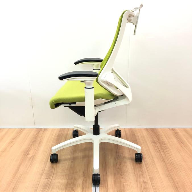 【フィット&フリー!姿勢の変化にフレキシブルに対応!スタイリッシュで座り心地も抜群の高機能チェア】■イトーキ(ITOKI) エフチェア 肘付き ハイバック ■メッシュバック ■可動肘 ■コートハンガー付き ■アイビーグリーン×ホワイトフレーム【IB】