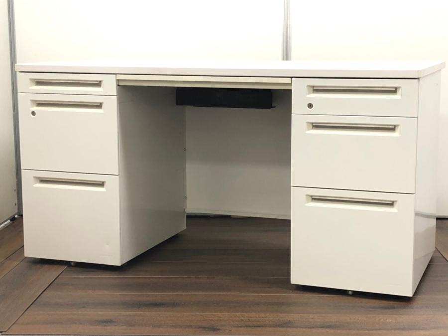 【在庫入替セール品!】オカムラ 両袖机 アドバンス ホワイト W1400 【配線カバー・引き出し取っ手に日焼けありのためお安く!】- 足立・葛飾店