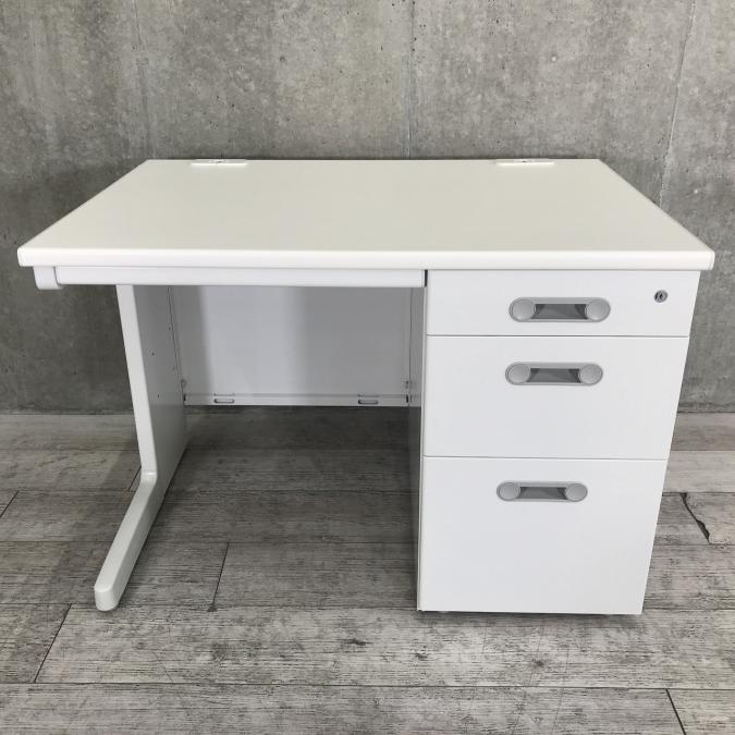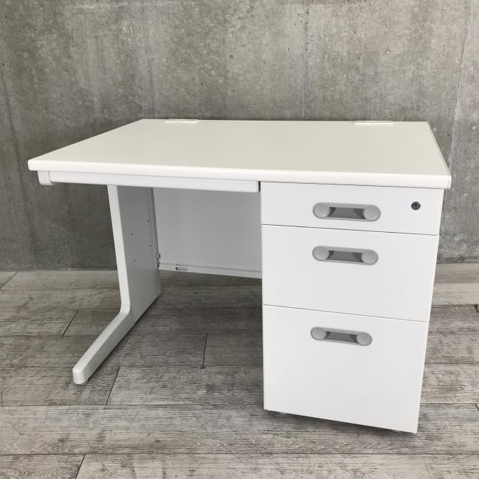 ライオン事務器製、W1000mmサイズの片袖デスクです。