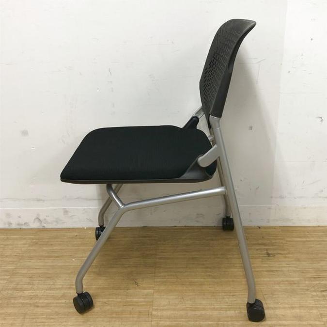【重ねて省スペースなネスティングチェア!会議室、共有スペースなどに!】/オススメ(おすすめ) /人気商品【弊社使用欄:A01049591】■ネスティングチェア ミーティングチェア ■背ヌードメッシュ ■キャスター付 ■ブラック/オカムラ(okamura)製 ルナ(Runa)チェア