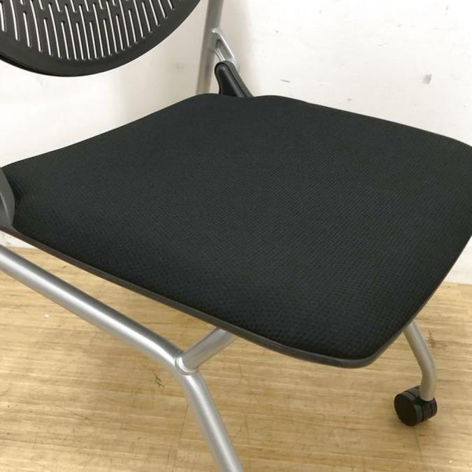 【スタイリッシュなデザインで座りやすい!】■オカムラ(okamura)製 ルナ(Runa)チェア ネスティングチェア ミーティングチェア 会議用 ■背面樹脂メッシュ ■ブラック 【フレキシブルに使える!便利なネスティングチェア!】
