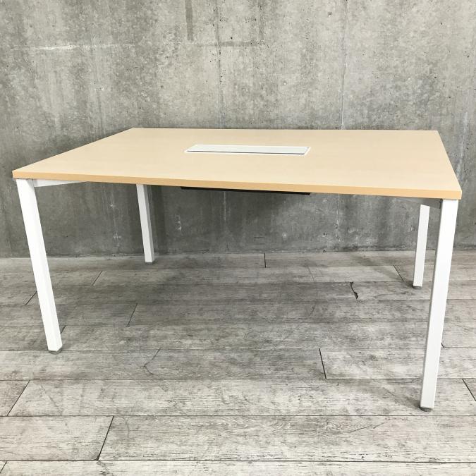 天板コンセントが内蔵された便利なテーブル!オシャレなナチュラル天板仕様!幅1400㎜・奥行900㎜ ■内田洋行/notio/ナチュラル- 立川・八王子店