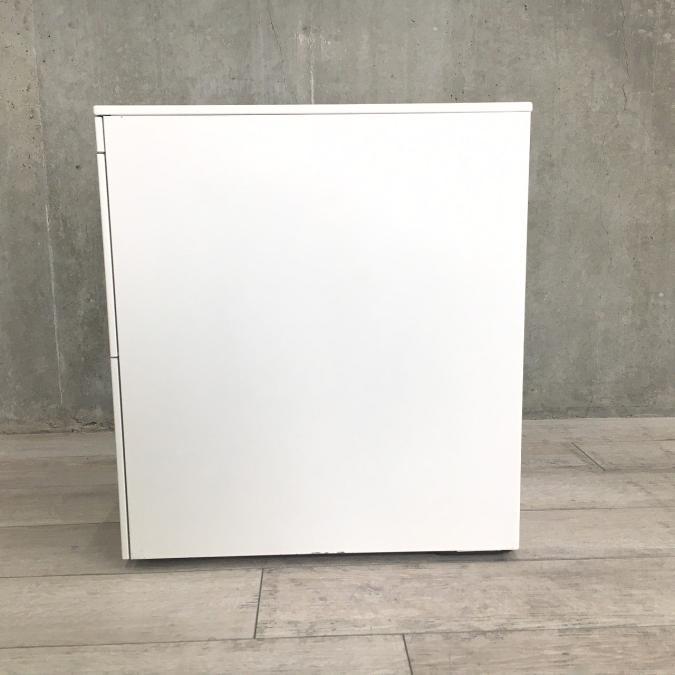 【正面に取っ手が無いフラットなデザイン!キャスター付でレイアウト変更がスムーズ!】■オカムラ(okamura)製 プロユニットシリーズ 3段ワゴン フリアド用ワゴン H650㎜ ■ホワイト ■シリンダー錠 ※キズ・塗装剝がれ有