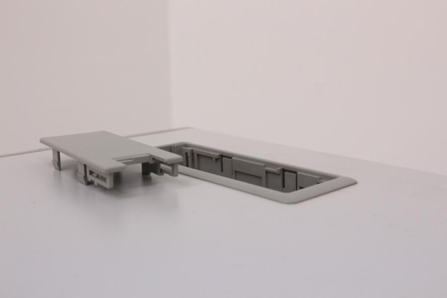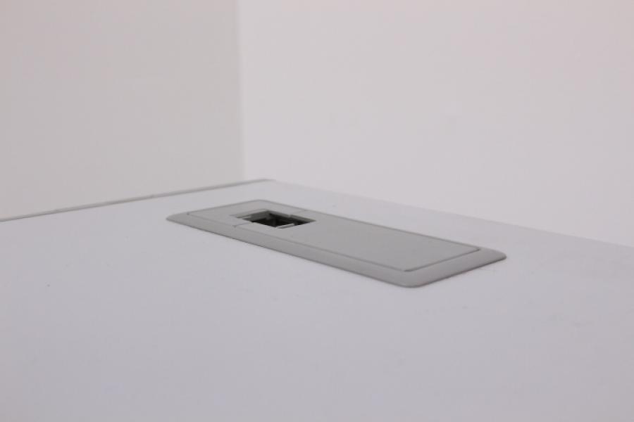 - 天板にコードホールが2ヵ所あり、レイアウト自在です。天板と幕版の間に30mmのすき間があり、対向配線も容易です。