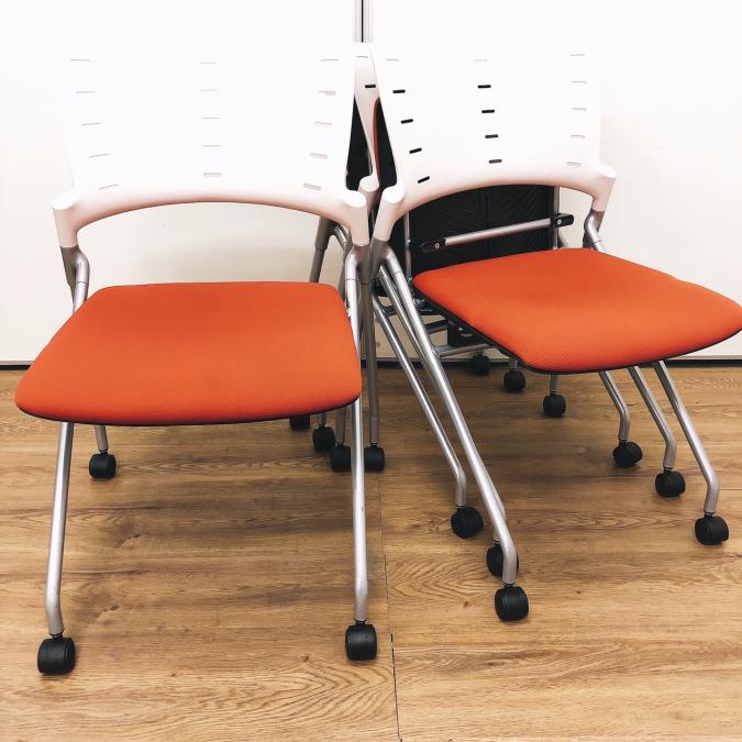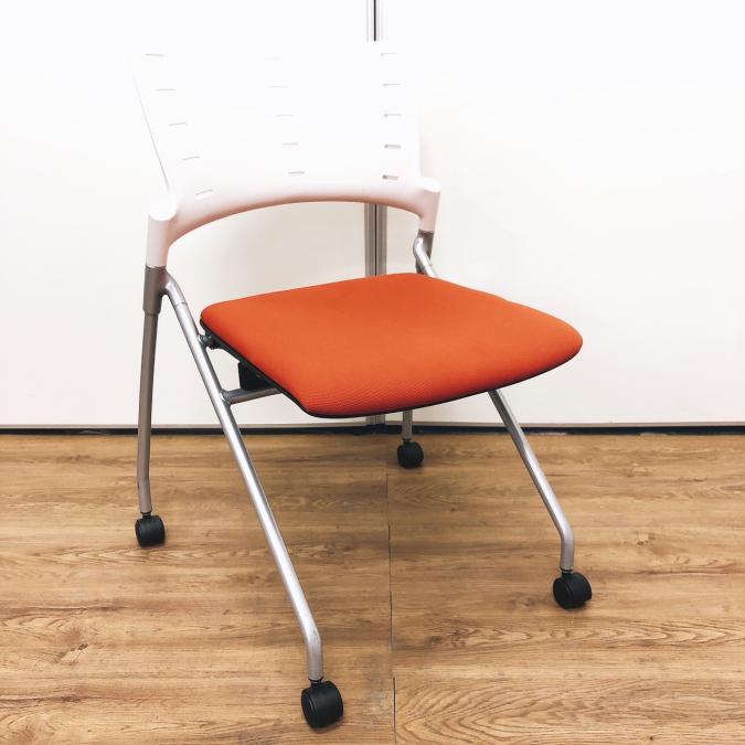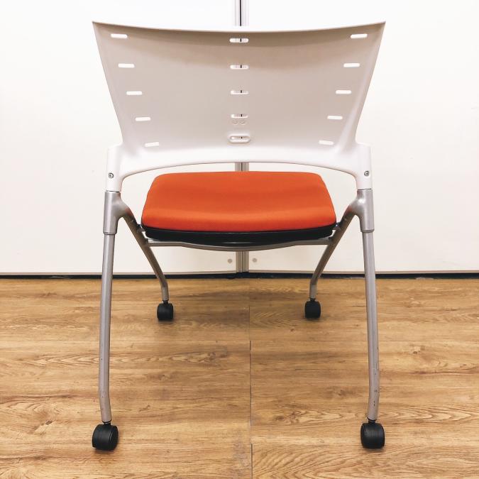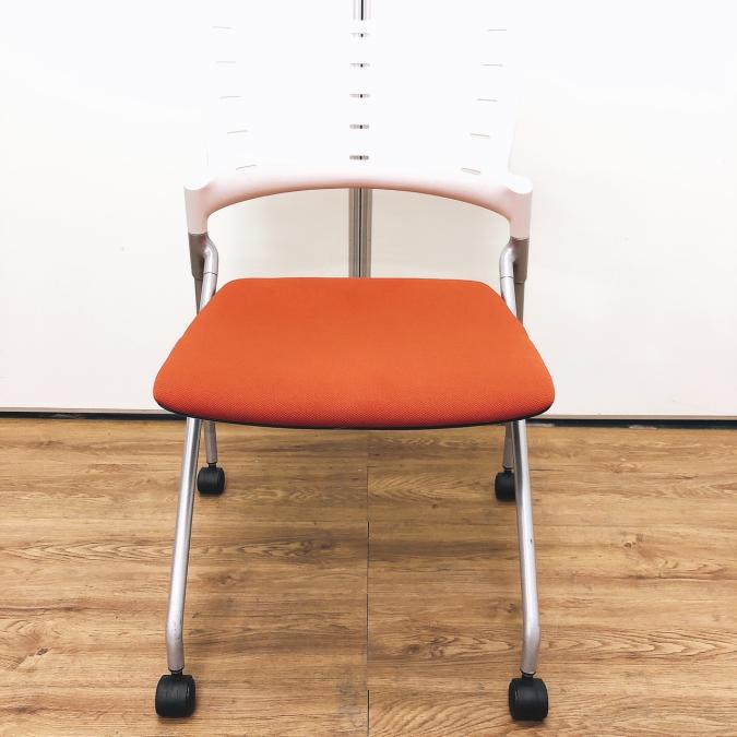 【人気のネスティングチェア!ミーティングスペースに最適!】■イトーキ(ITOKI) マノス(MANOSS) ネスティングチェア ミーティングチェア ■背パッドなし キャスター付き ■アンバーオレンジ×背面ホワイト【入替セールにつき30%OFF!】