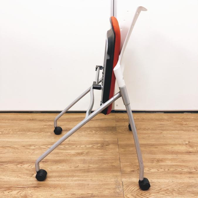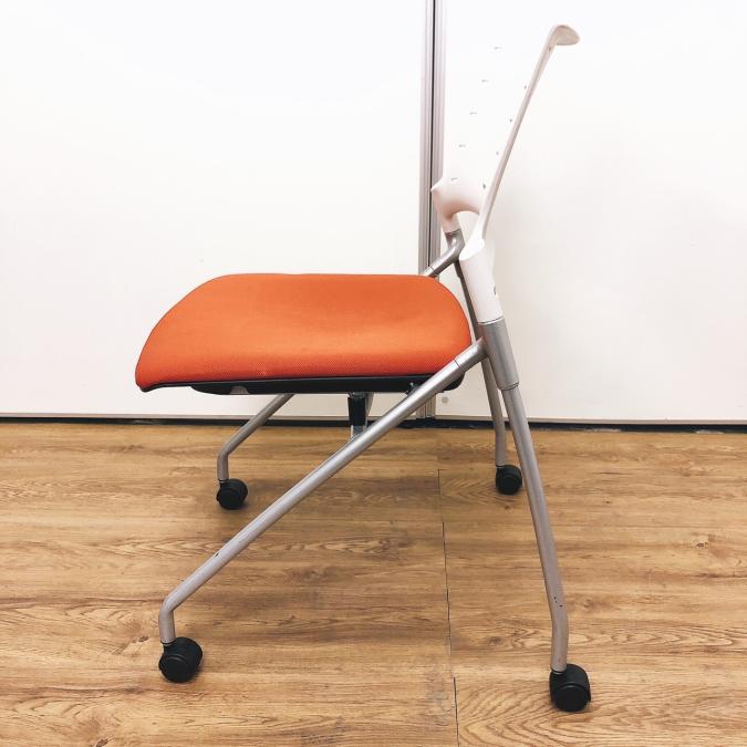 【定価約6万円】【重ねて収納可能!スペースの削減におすすめなネスティングチェア!】■イトーキ/マノス ■ネスティングチェア ■オレンジ