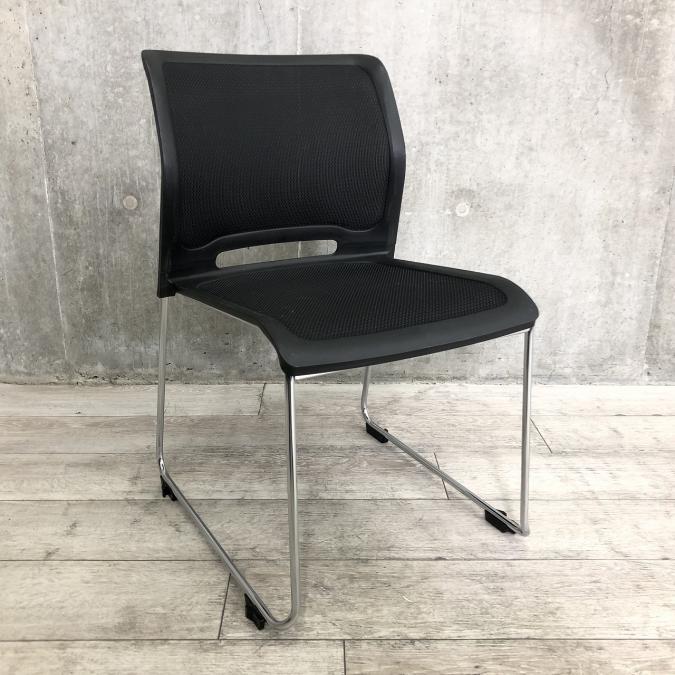 【背座3Dメッシュ形状!快適な座り心地!】■コクヨ製 スタッキングチェア ブラック【エレガントなデザイン!】- 品川・三田店