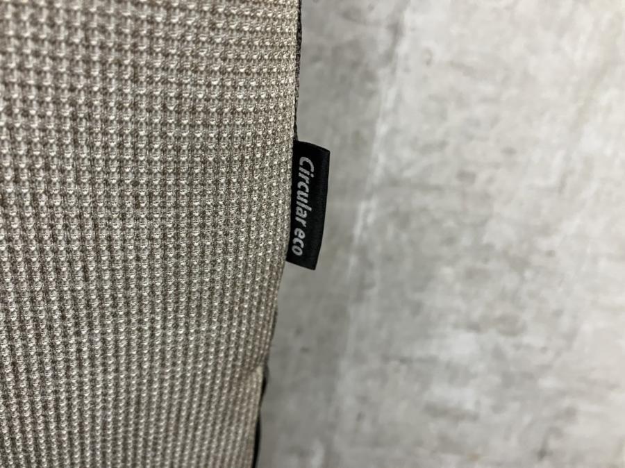 座面・背面の張地にはPETボトル容器を原料とする。再生PET(再生ポリエステル)生地を100%採用。リサイクル時には車の内装材などに再生利用されます。