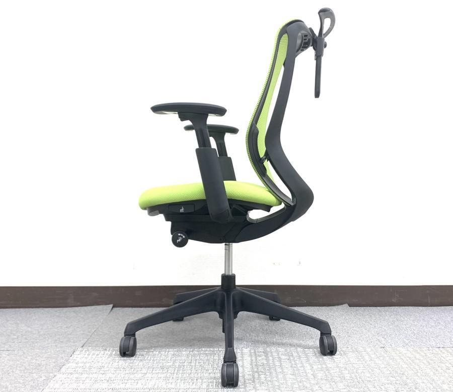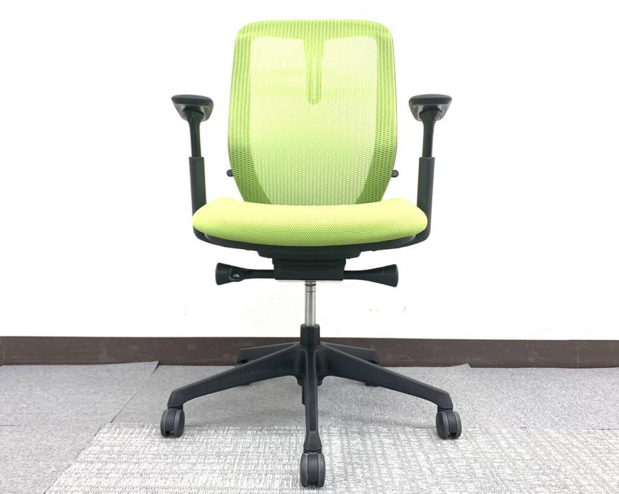 【前傾チルト機能付き!オカムラ製品で最も人気を集める高機能メッシュチェア!】■オカムラ(okamura)製 シルフィ(Sylphy)チェア ハイバック 肘付き ■可動肘 ■ライムグリーン × ホワイトシェル【状態良好品!】