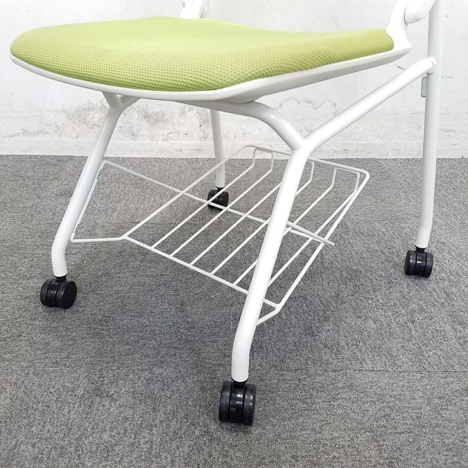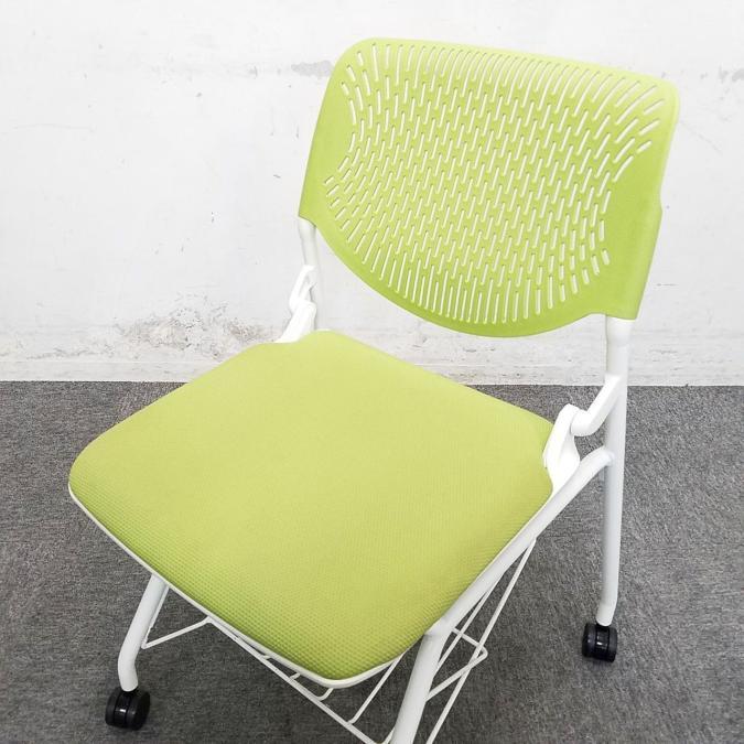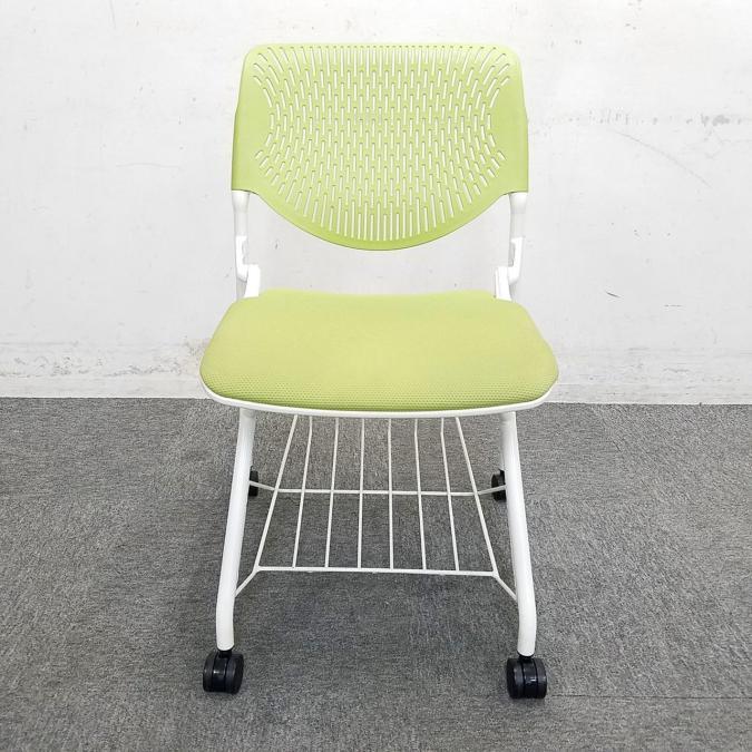 【T11】【T10】【商品入替のため、残り6脚限り】オカムラ製 ルナシリーズ ライムグリーン ホワイトフレーム 軽快なデザインが人気 ネスティングチェア!!