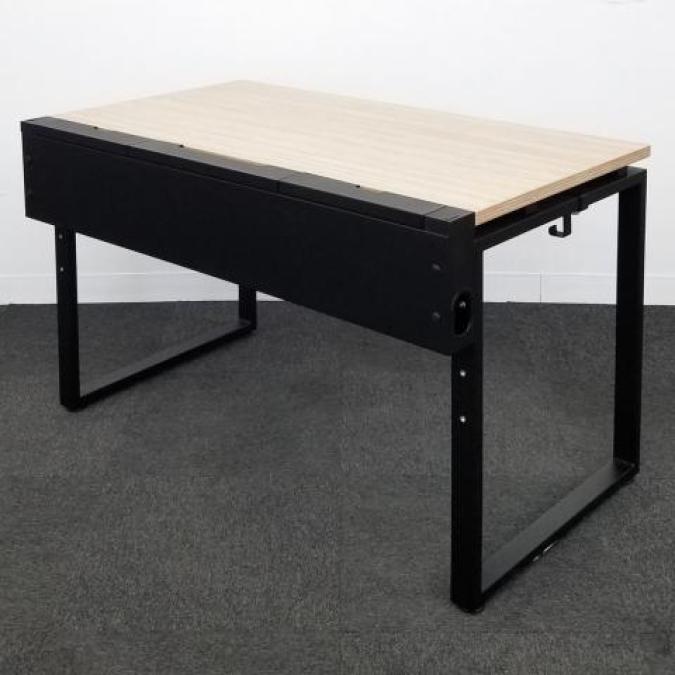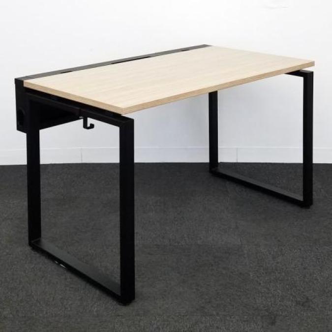 【8台入荷】おしゃれなスタンダードデスク入荷!中古 平机 ブラックフレーム オーク天板 127 サイドフック付き- 豊中・尼崎店