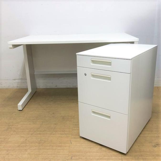 内田洋行製の主力シリーズのスカエナデスクシステムと3段ワゴンGTシリーズ