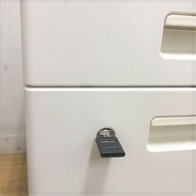 ワゴンはホワイト色 A4ファイル×2段 + ペントレー収納 もちろん鍵付きです。