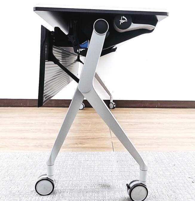 【折りたたみ収納が秀逸!スタイリッシュなデザインで高品質!】■オカムラ(okamura)製 インターアクトNTシリーズ(INTER ACTNT) サイドスタックテーブル W1500×D600×H720mm ■キャスター付 ■ホワイト
