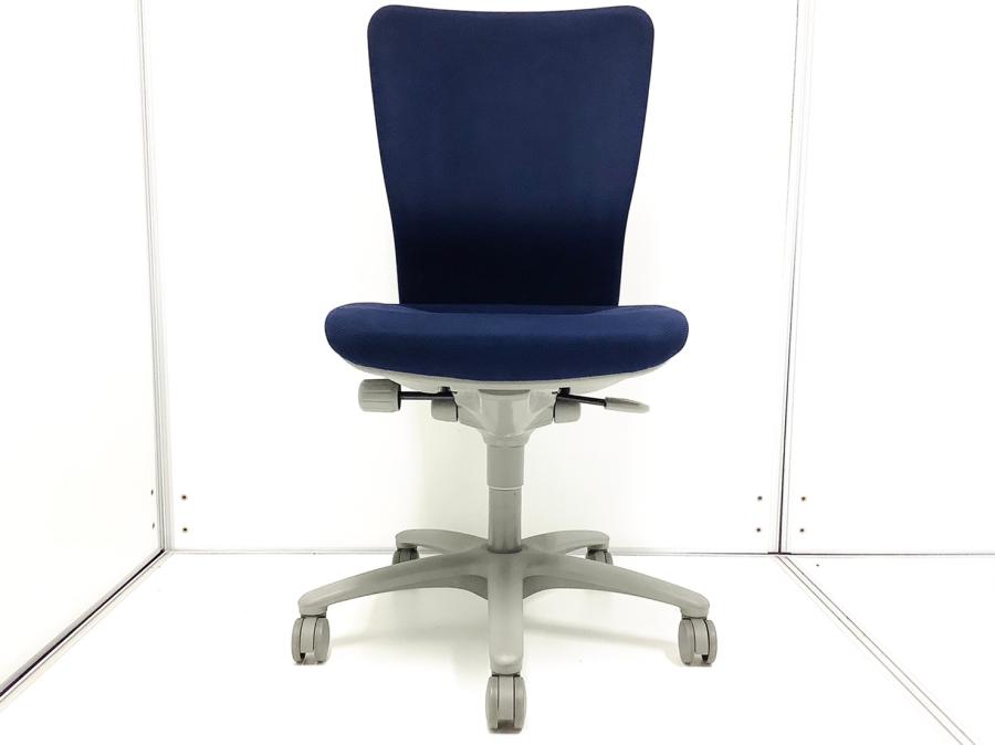 【在庫入替セール】オカムラ カロッツァ 肘無しチェア ゆったり座れるハイバックモデル ダークブルー×ブラックフレーム