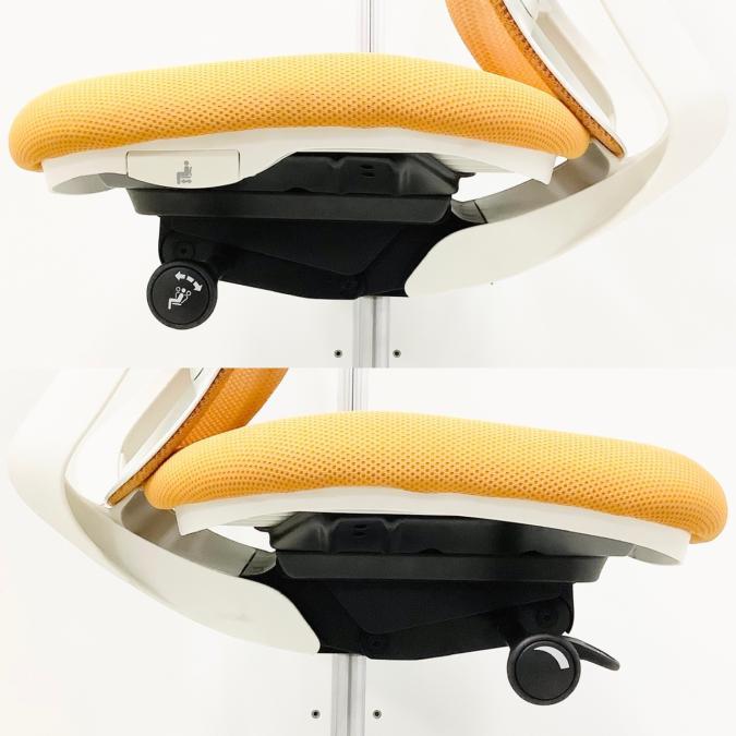 - 座面の左にあるレバー操作により、座面の奥行き調整が可能です。(ストローク:50mm)