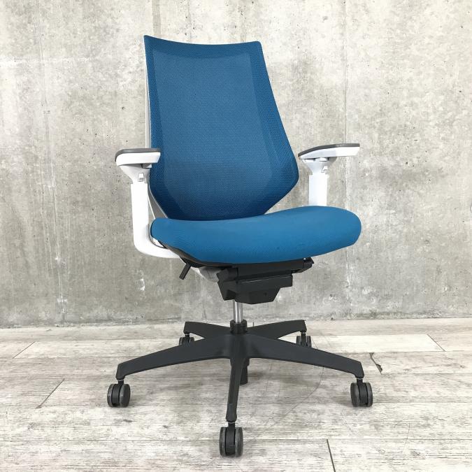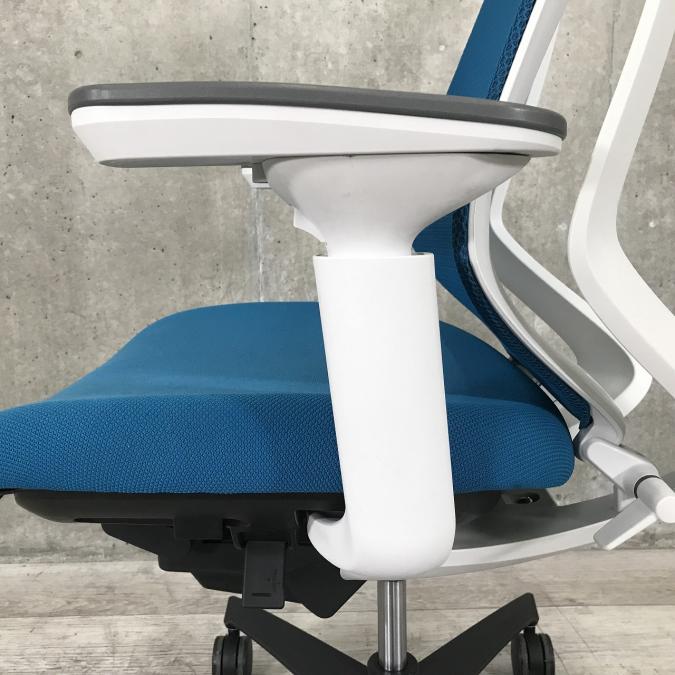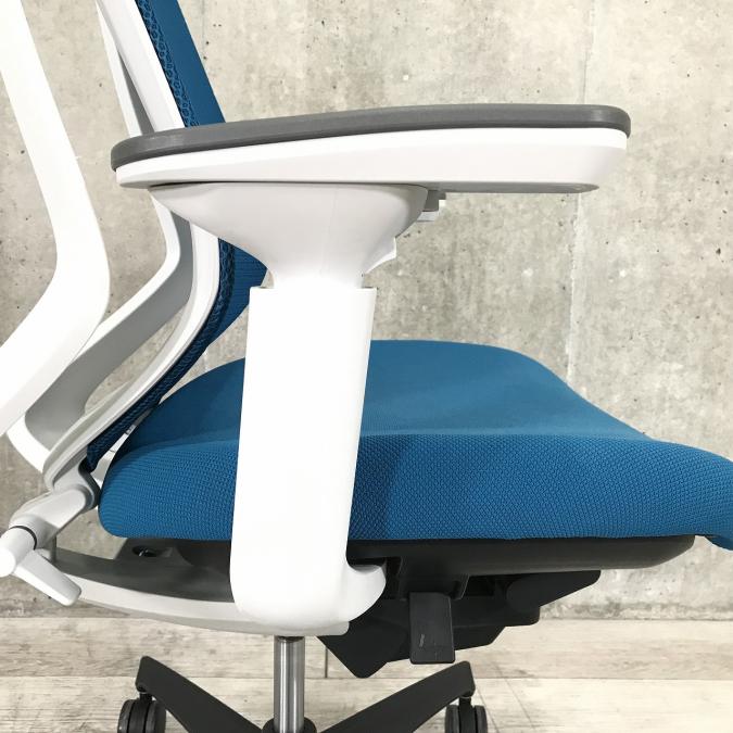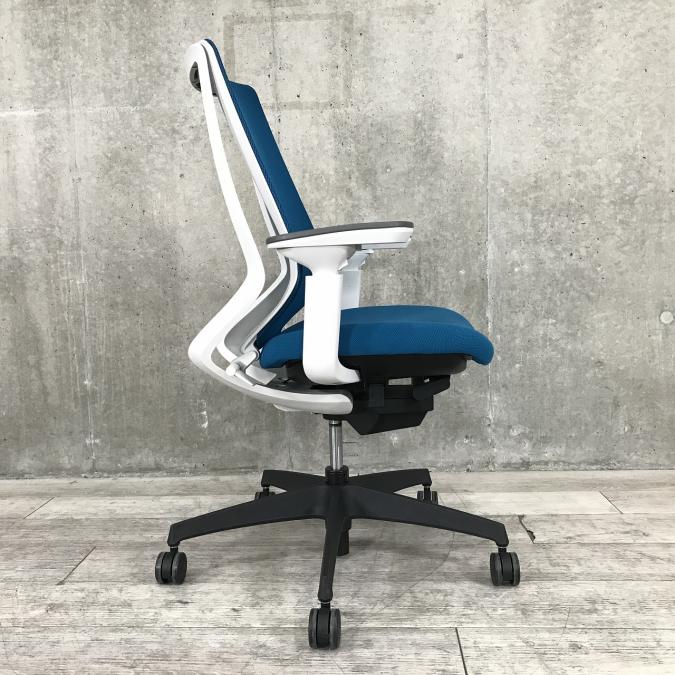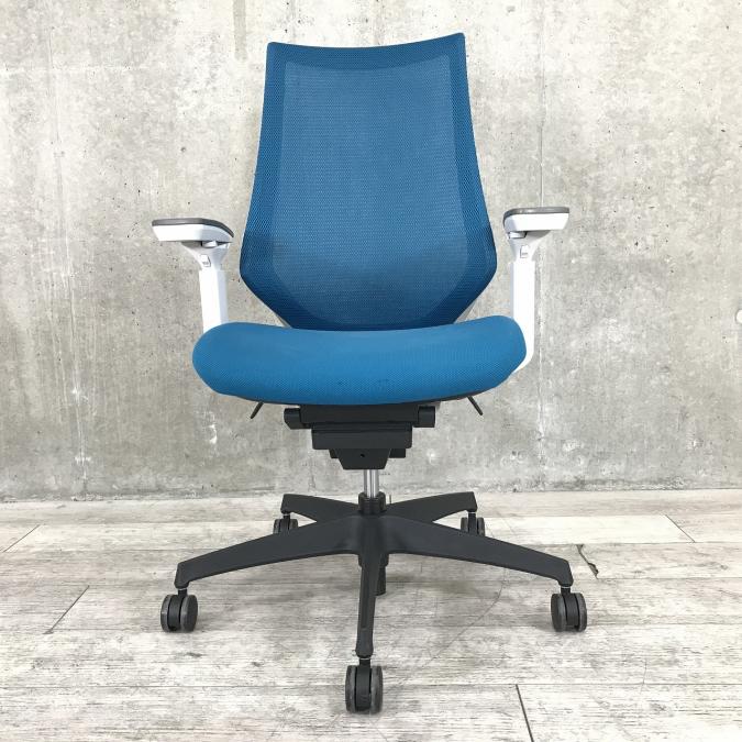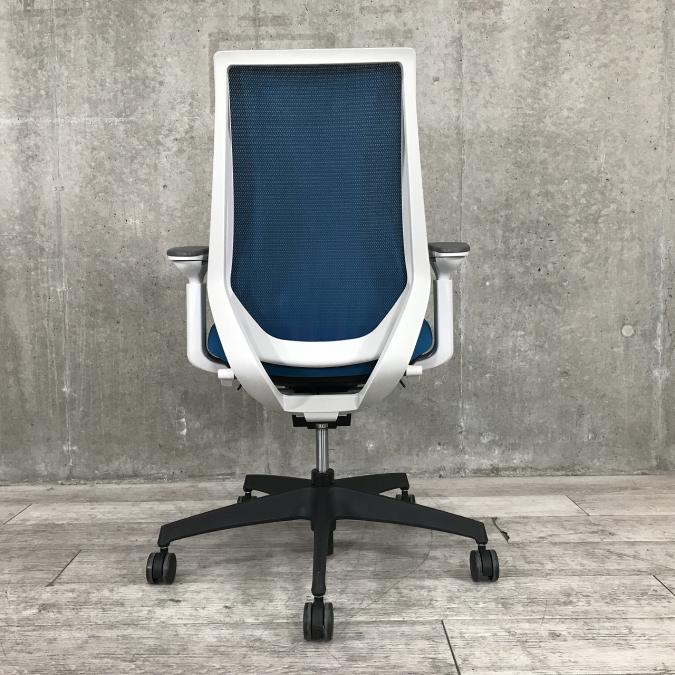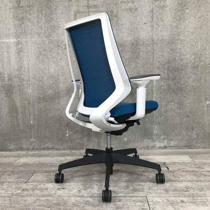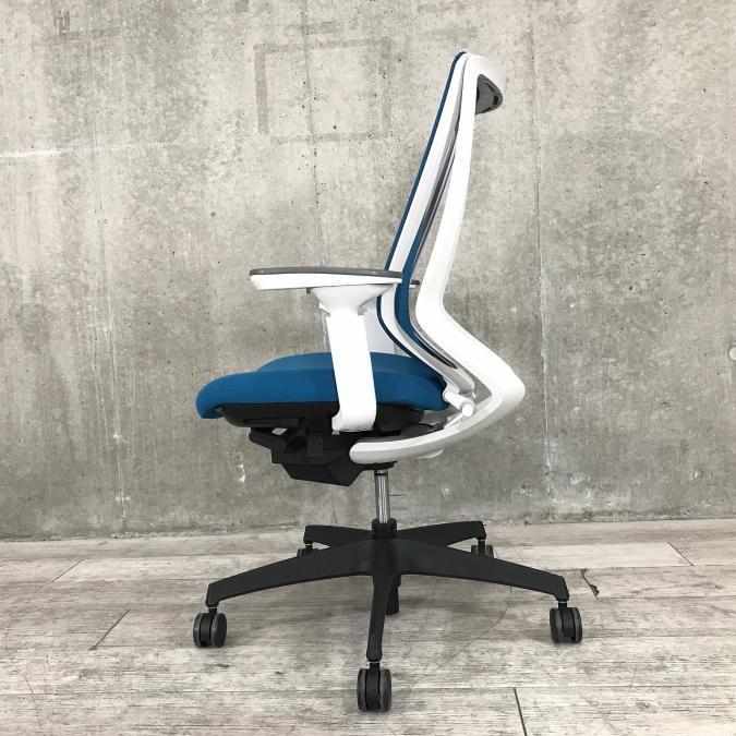 ■KOKUYO/コクヨ ■デュオラ(Duora)チェア ■プルシアンブルー×ホワイトシェル×ブラック脚 ■肘付き/可動肘 ■ハイバック ■背面/メッシュ 座面/布 ■コートハンガー付き ■オススメ/人気/定番商品 【弊社使用欄:A01040309 K】【ID】