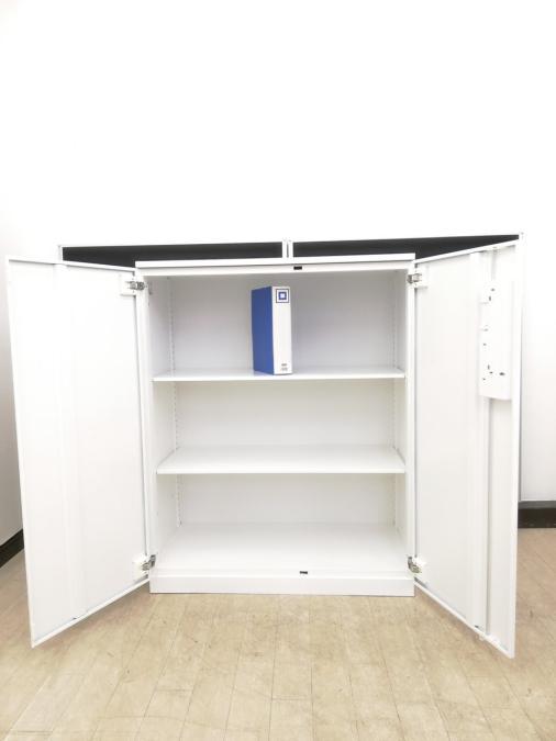 【収納物がひとめで分かる両開き戸タイプ!】■コクヨ(KOKUYO)製 エディア(EDIA)シリーズ 両開き書庫 ローキャビネット H1130㎜ ■天板・ベース付 ■ホワイト ■シリンダー錠【IB】