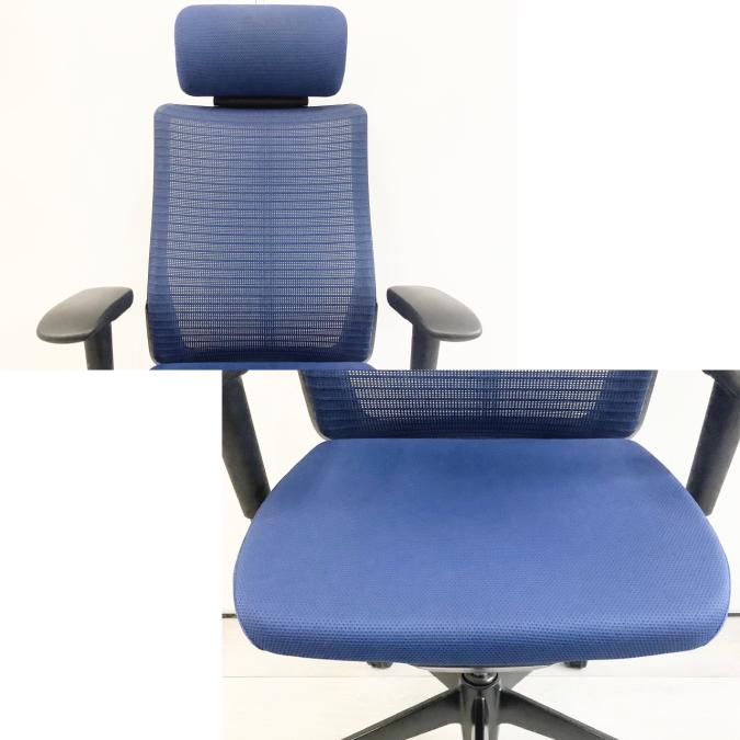 【在庫入替セール】【5脚入荷】【どんな空間にも調和するデザインと最上級の操作性!背面メッシュで通気性抜群!】■オカムラ(okamura)製 コーラル (Choral) 肘付ハイバック ■ミディアムブルー ■メッシュ背面 ■可動肘 ■ハンガー付【K】【T8】