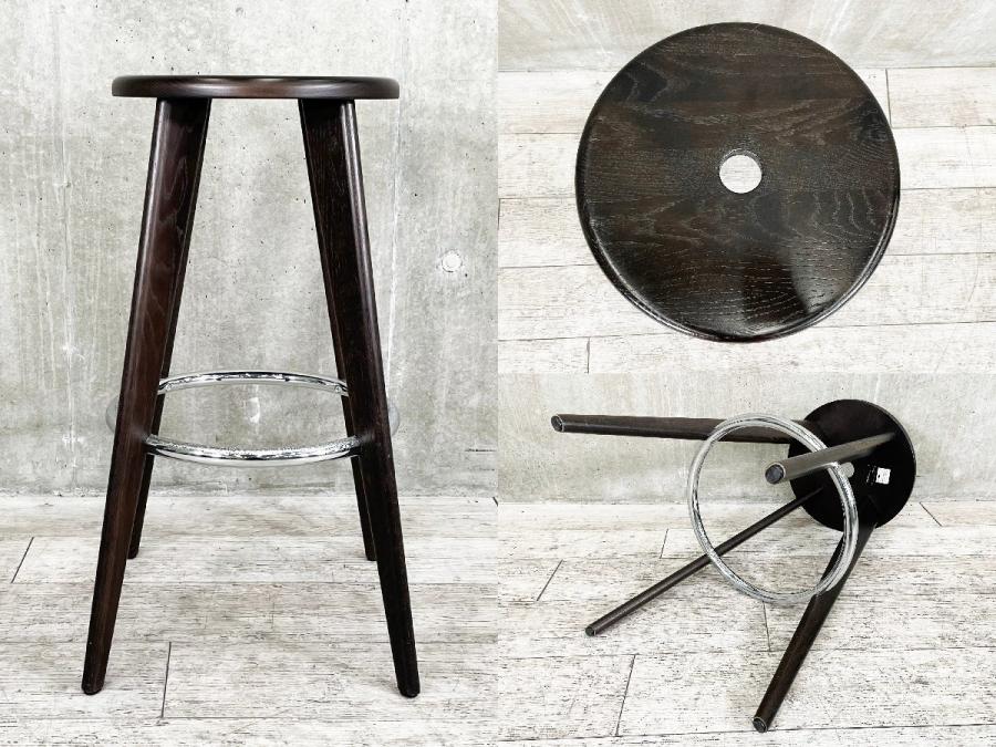 Tabouret Haut(タブレ ウ)ハイスツールは、 三角形のベース4本と座面によってシンプルに構成されており、 クローム仕上げのフットレストによって連結し、最も強度が高く得られるよう 合理的に組み合わせた設計がなされています。