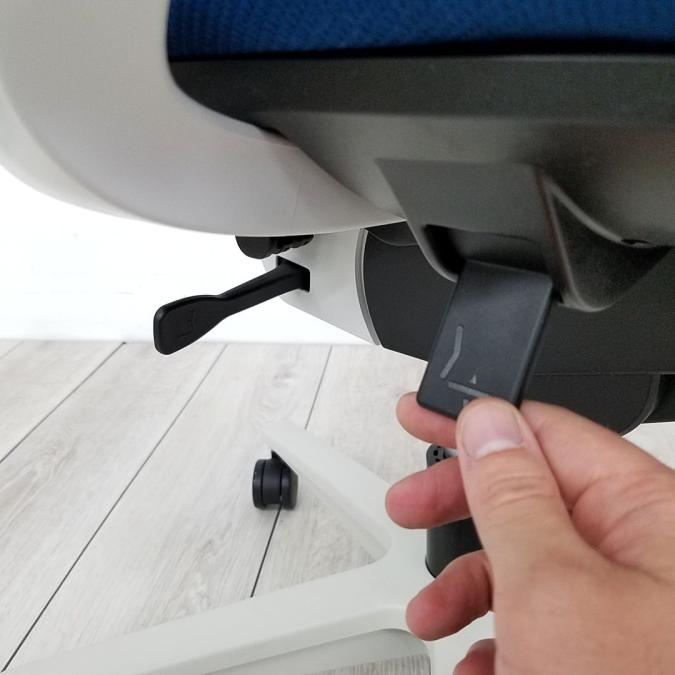 (ファブリック) - レバーを上下させることで、内蔵されたランバーサポートプレートの押し出し量を2段階(15㎜)切り替えることができます。
