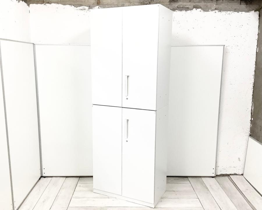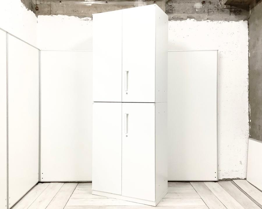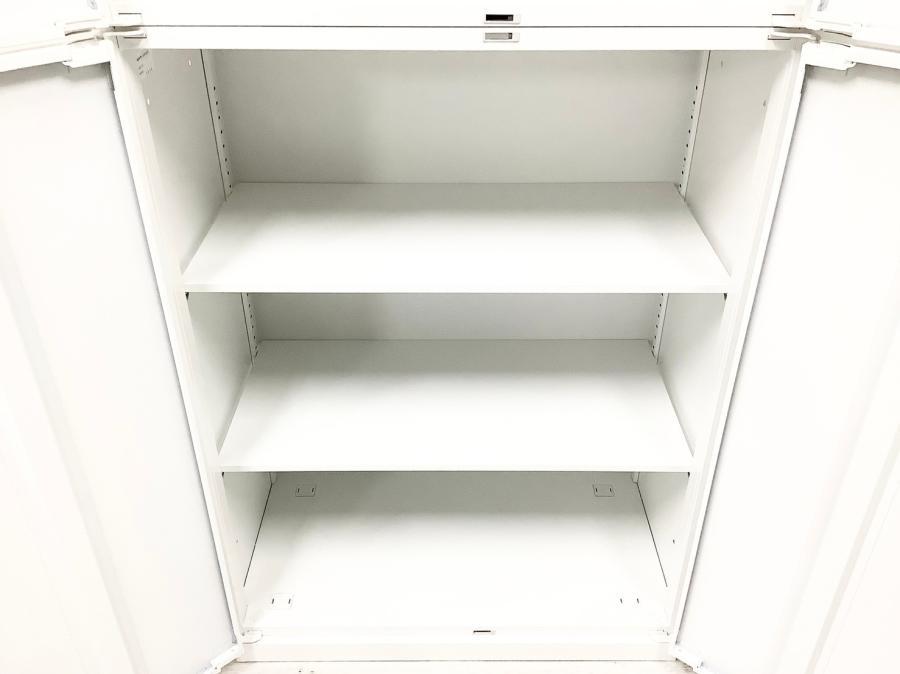 内田洋行 HSシリーズ 両開き+両開き書庫 鍵付き シリンダー錠 ホワイト A4×6段分の収納可能 ※取っ手部分に日焼けあり 【愛知・名古屋・豊田・静岡・浜松】