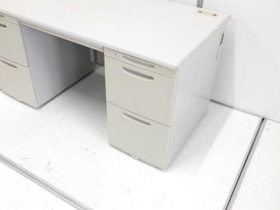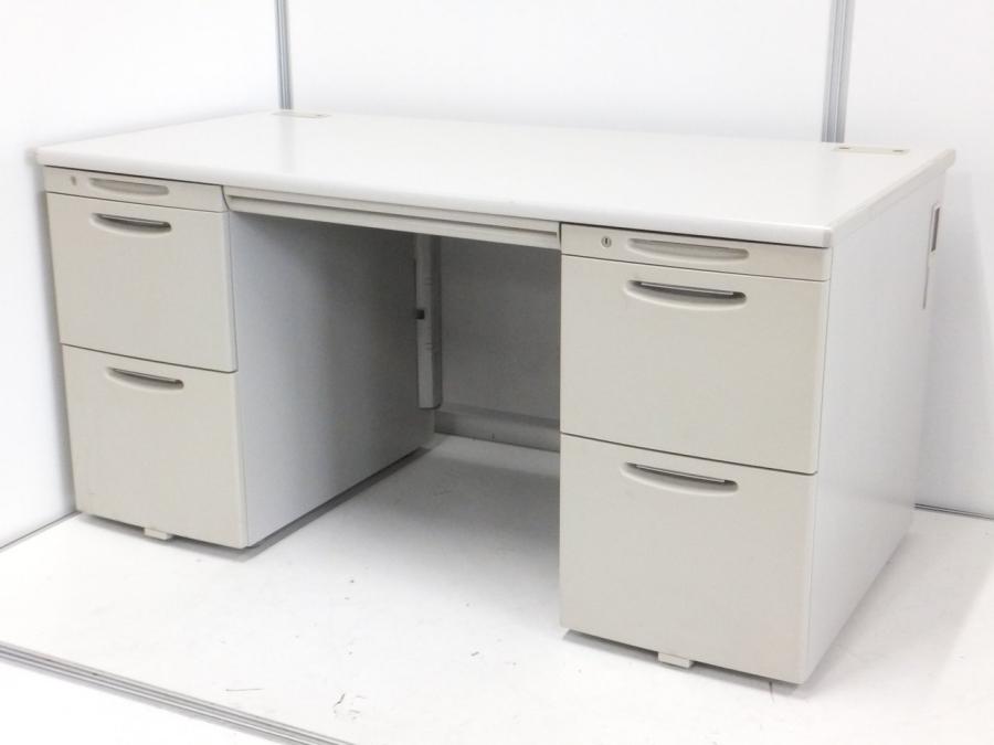 上長席・役員向けサイズ オカムラ SDデスクシステム 両袖机 定番のW1400サイズ 汚れの目立ちにくいニューグレー 鍵付き シリンダー錠