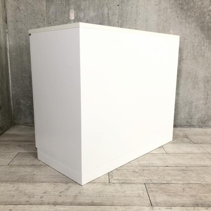 【オフィスの定番!大きく開いて見やすい両開き書庫!】■イトーキ(ITOKI)製 シンラインシリーズ (THIN LINE) 両開き書庫 ローキャビネット ■天板/ベース付き ■シリンダー錠 ■ホワイト