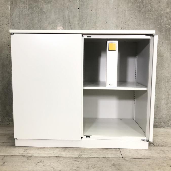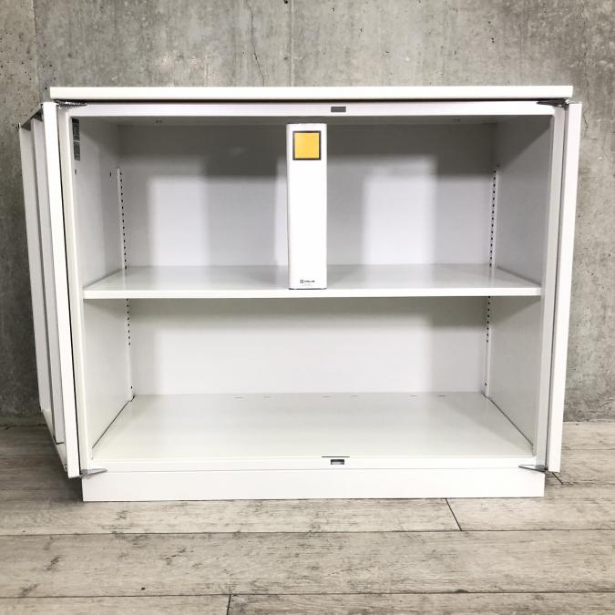 【オフィスの定番!大きく開いて見やすい両開き書庫!】■イトーキ(ITOKI)製 シンラインシリーズ (THIN LINE) 両開き書庫 ローキャビネット ■ホワイト ■シリンダー錠