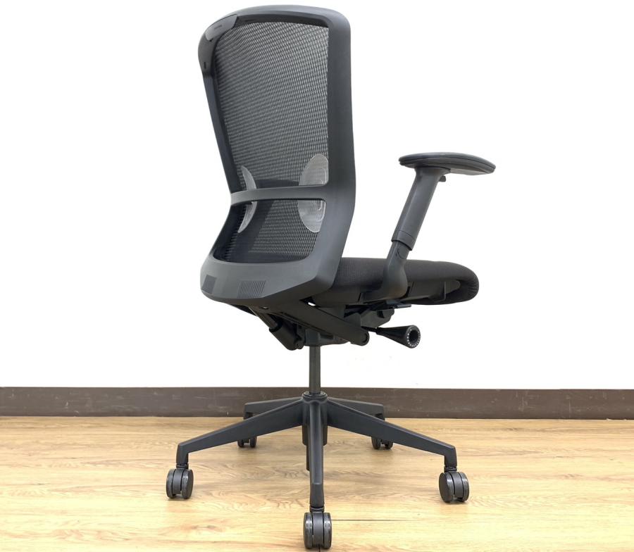 また、個人的にオススメなのは『フルアジャスタブル肘』というアーム部分が斜め前に伸びていくタイプの肘置きを搭載したモデルです。高さを上げれば上げるほどパッドが前方に迫り出していくので、デスクワークの際にちょうど肘を置きたい場所に肘置きがきます。これがとても快適なので、ぜひ一度お試しいただきたいです!*エルフィチェアの肘パーツはフルアジャスタブル肘の他に、固定肘、アジャスタブル肘などがあります。