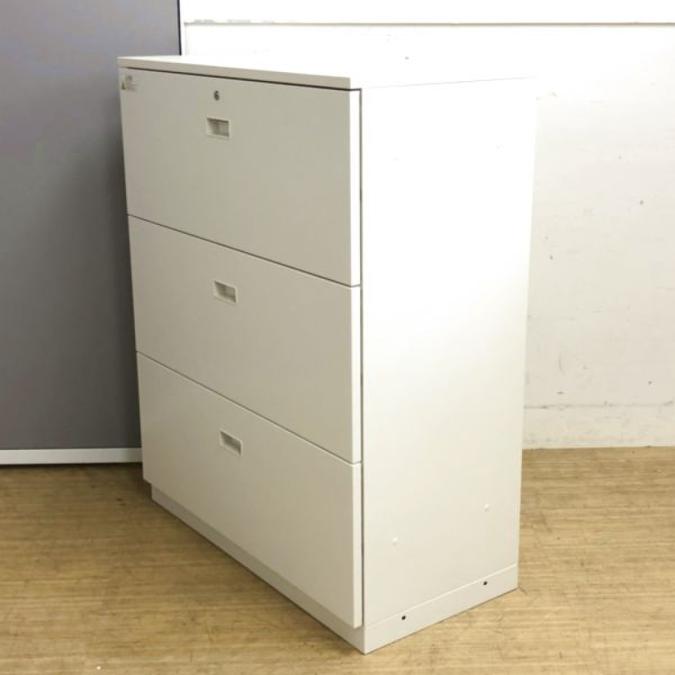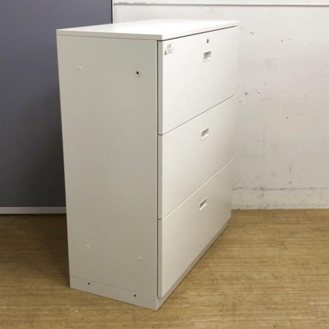 ■イトーキ(ITOKI)製 シンライン (THIN LINE) 3段ラテラル書庫 ローキャビネット ■ホワイト ■シリンダー錠