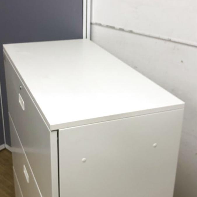 【人気3段ラテラルの小さめサイズ!天板付きのローキャビネット!】■イトーキ(ITOKI)製 シンライン(THIN LIN)シリーズ 3段ラテラル書庫 ローキャビネット ■天板付き ■ホワイト ■シリンダー錠 ※ラッチ日焼け有【AD】