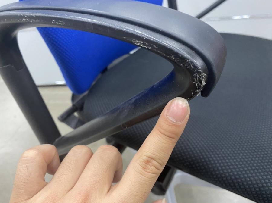 - 目立つ箇所あり傷・破れ・ほつれ・へたり・しわが多数または深い傷・破れ・ほつれ・へたり・しわが一部ある。※座面・背もたれ、シェル、脚部等にある。