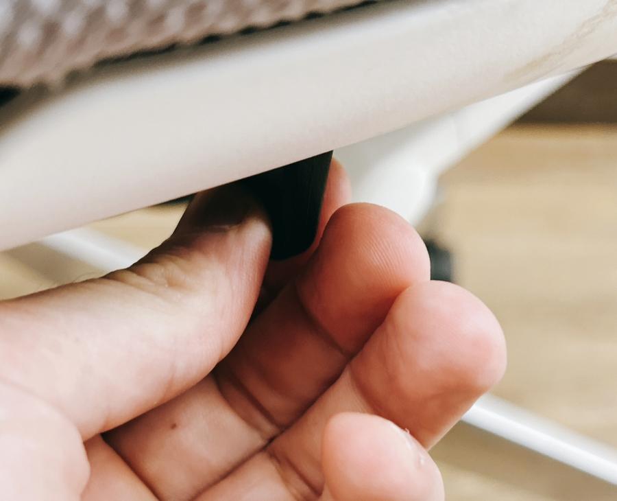 - あり黄ばみ・変色が広い範囲にうっすらある、または濃い黄ばみ・変色が一部ある。(例、座面・背もたれ、脚部等にある。)