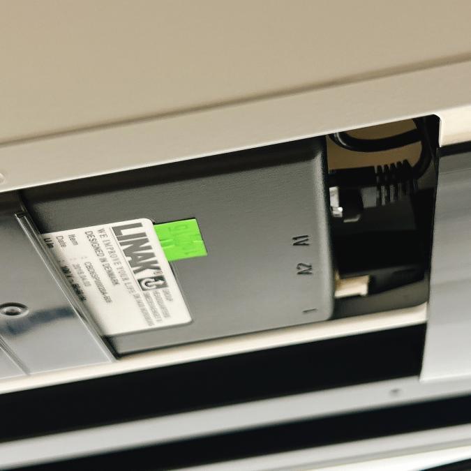 上下昇降作動中に天板が障害物にぶつかった際、異常電圧を感知し動作をストップ。