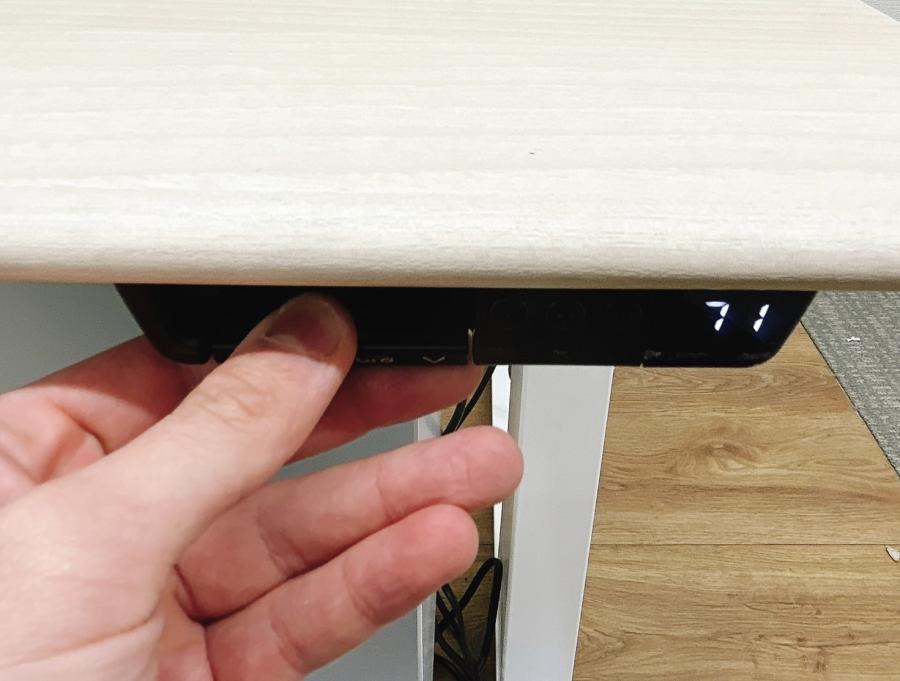 デスクの高さ設定は天板下の上下ボタンを押すだけ。
