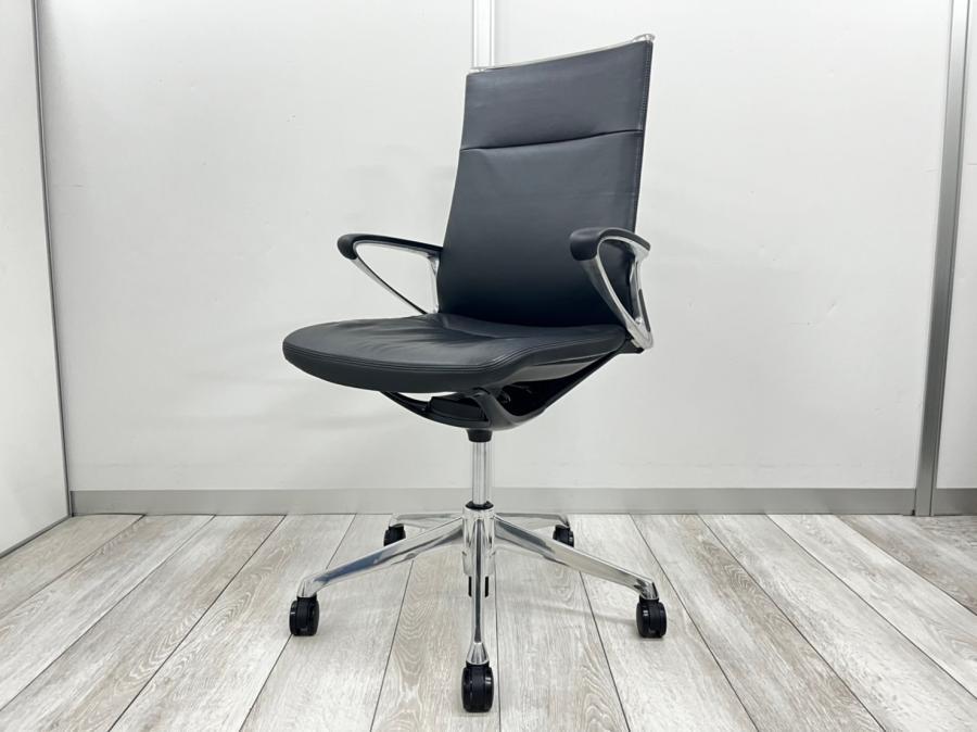 【会議室やモダンなオフィスの執務用として人気のチェア!レザータイプが入荷!】■オカムラ(okamura) モードチェア(mode) 肘付き ハイバック ■張地:レザー 色:ブラック ■デザインアーム