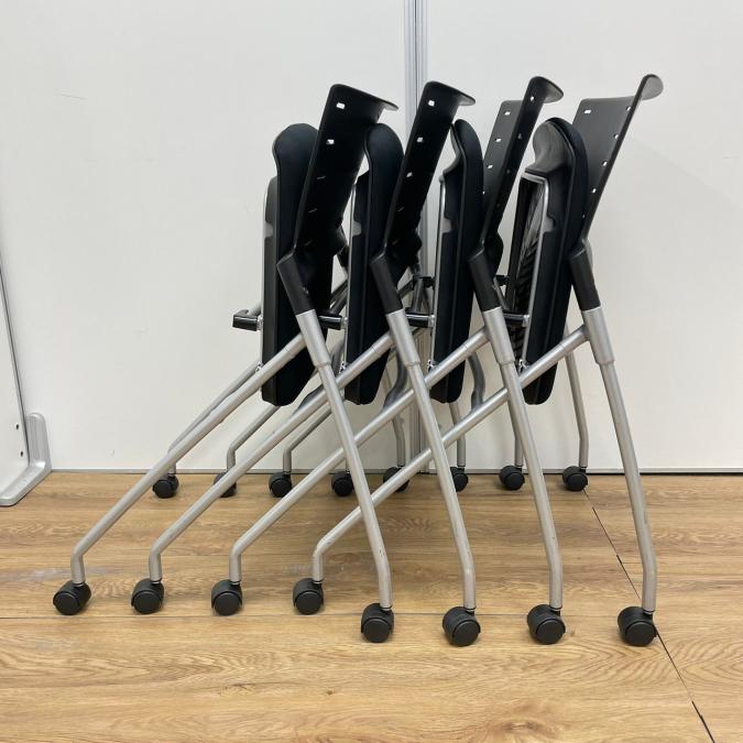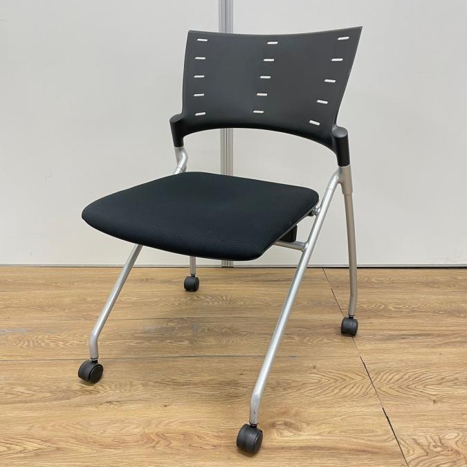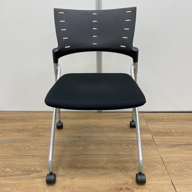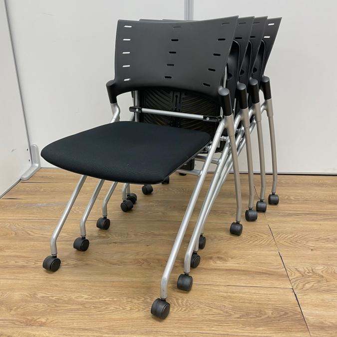 【4脚セット】 イトーキ製 マノスシリーズ 背もたれ樹脂 ブラックカラー ネスティングチェア!!- 京都東寺店
