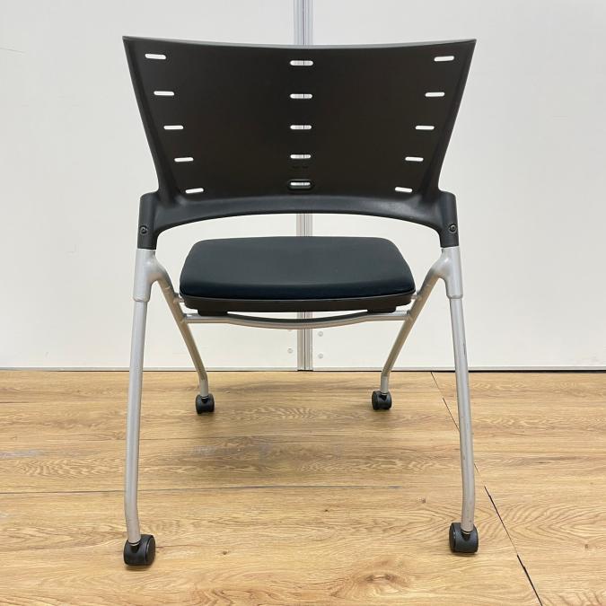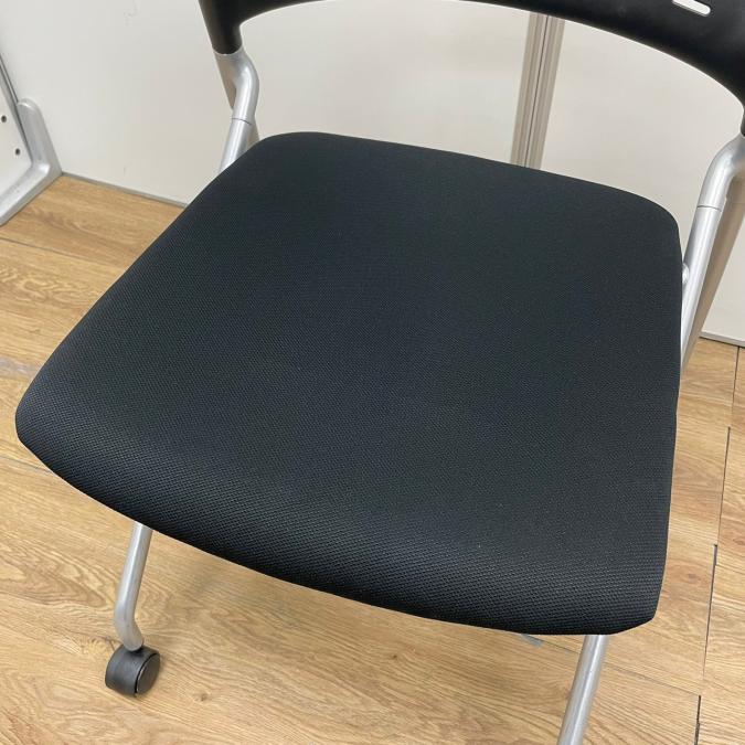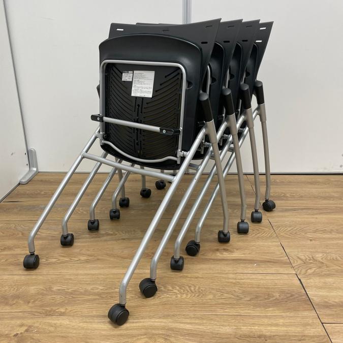 【4脚セット】 イトーキ製 マノスシリーズ 背もたれ樹脂 ブラックカラー ネスティングチェア!!- 京都東寺店
