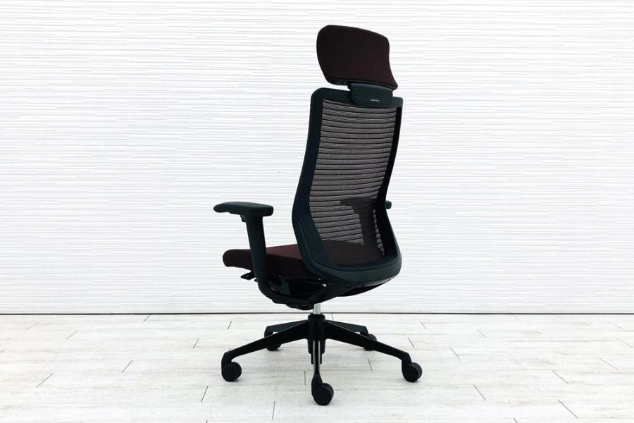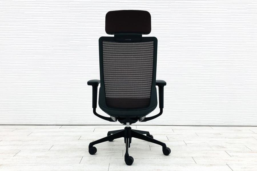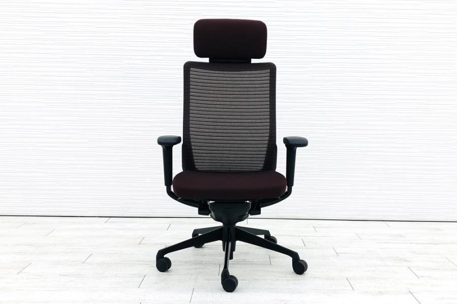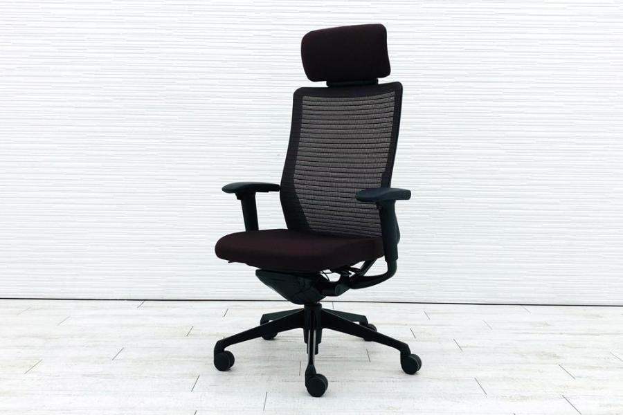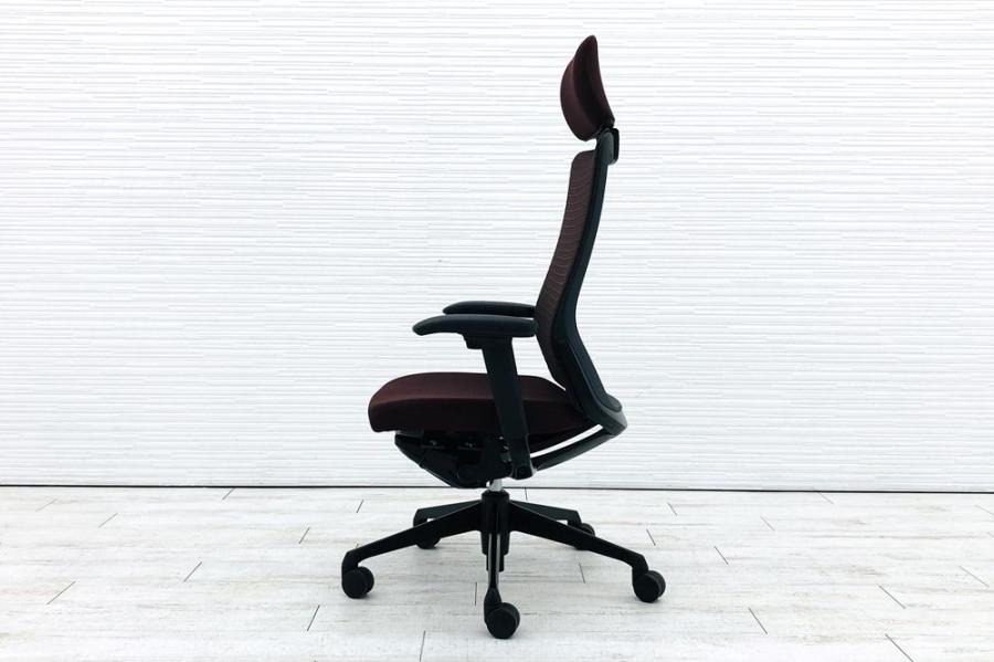 【上質で快適なクッション!】■オカムラ コーラルチェア 可動肘付 ダークブラウン エクストラハイバック ■ヘッドレスト付で上質な座り心地!【OI】【倉庫在庫品】- 日本橋店