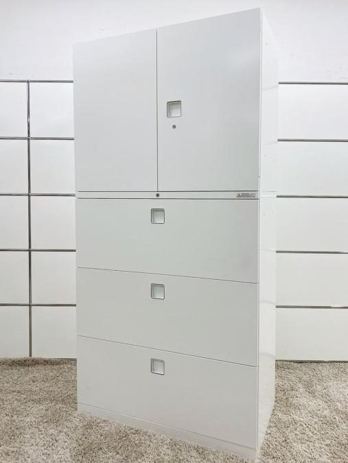 【使いやすいサイズが人気です!】■オカムラ製 上下書庫セット(両開き2段&ラテラル3段) H1810mm ホワイト【在庫入替セール品!(本在庫限定価格)】- 川崎店