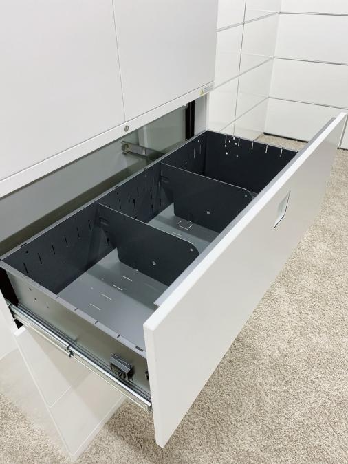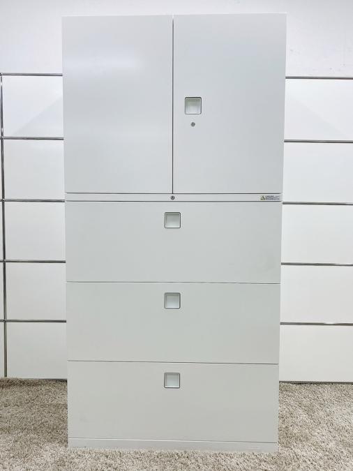 上段は2段タイプの両開き、下段が3段ラテラル書庫タイプで、上下でH1810mmタイプでございます。