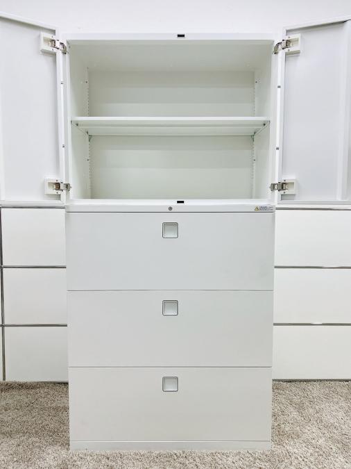 オカムラ レクトライン 3段ラテラル+両開き扉の書庫セット ホワイト シリンダー錠 鍵お付けします 人気商品