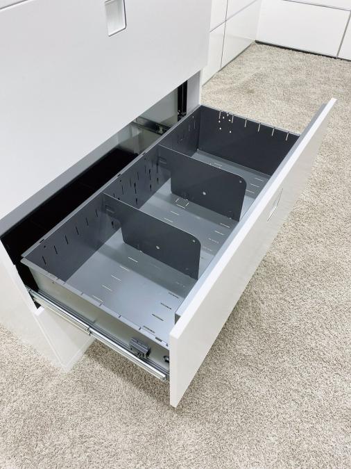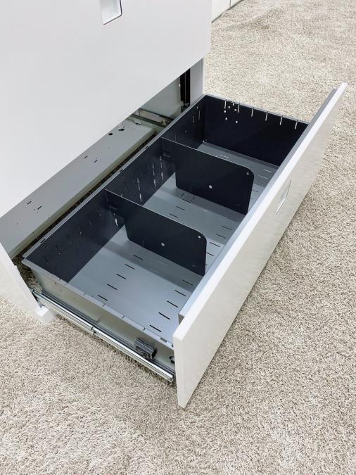 オフィスの必需品!書類をスッキリ整理できる容量の3段キャビネット取っ手がどの方向からでも開くマルチハンドル! ■オカムラ/レクトライン(Rectline)/ホワイト