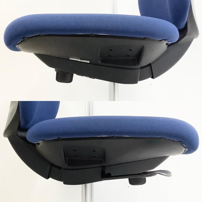 なので、「どれでも同じでしょう」と過小評価されがちですが、さすがのオカムラ製!座面の無段階上下調整やリクライニングの反発の強さ調整などに加え、リクライニンする際に足首の位置を支点にして動く、アンクルチルトリクライニングという特殊な機構が搭載されています。「人間が寄りかかる動き」にぴったりとフィットし、快適さをもたらしてくれます。