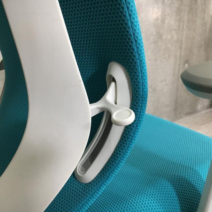 - 座面右下のダイヤル操作で、リクライニングの強弱調整が行えます。これまでのダイヤル式よりも、少ない回転数で、最弱?最強の調整が可能です。