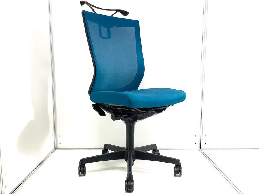 オカムラ エスクードチェアメッシュ仕様 ■色:ブルー ハイバック ハンガー付き ターコイズブルー- 名古屋千種店