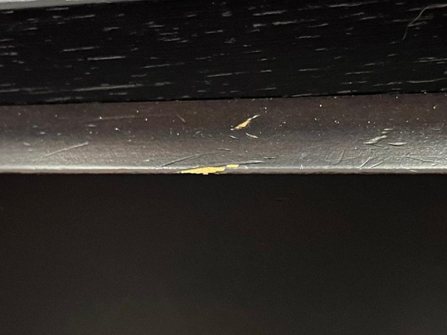 - 目立つ箇所あり傷・凹みが多数、深い傷・凹みが一部ある。(例、天板、正面、背部、サイド部分にある。)