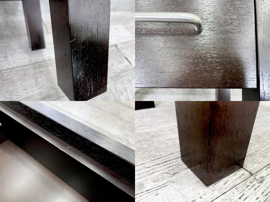 - 目立つ箇所複数あり深い傷・凹みが商品全体にある。(例、天板、正面、背部、サイド部分にある。)